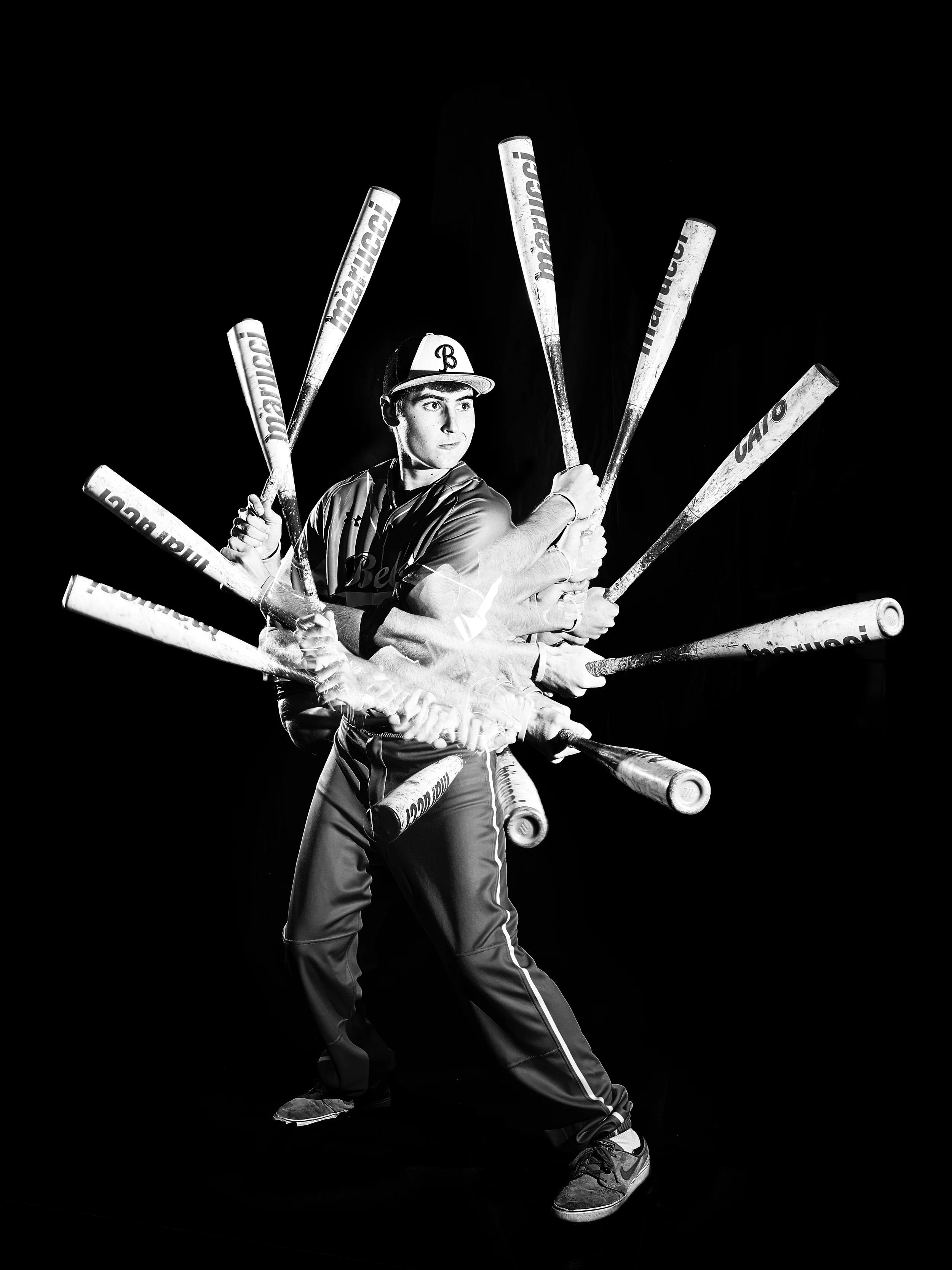 The most difficult part, besides post-processing, was shooting fast enough for each action to be fluid in the final result. We don't have quickly cycling strobes and our flashes have a cycle time of 2-3 seconds when shooting on manual 1/1 so I couldn't shoot quickly enough to get the 8-12 shots per movement I wanted. Instead, I approached each shoot either by having the subject repeat the action 5-6 times slowly or by having them move slightly and hold their position for each shot. Stationary props I shot separately without the subject in order to get the most effective lighting, they were then composited on top in post.